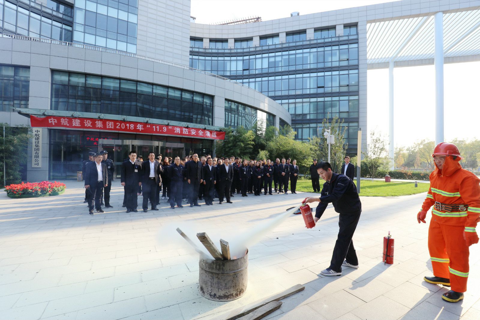 11月8日,集团公司围绕第27个全国消防日“全民参与,防治火灾”的主题,在总部大厦举办了消防安全演练活动。